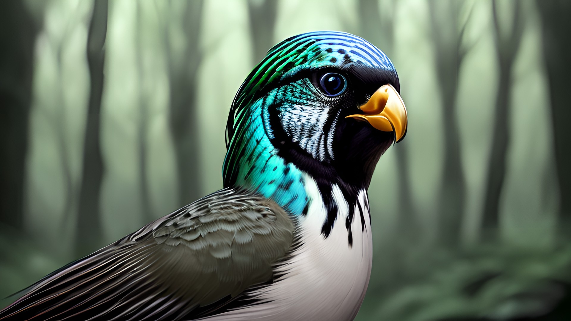 Prompt: mesmerizing award winning portrait of a breathtaking bird in a forest, absolute masterpiece